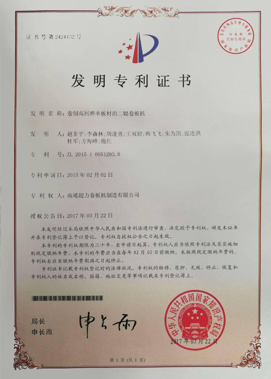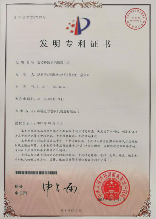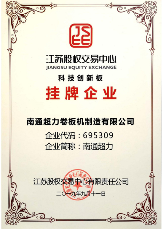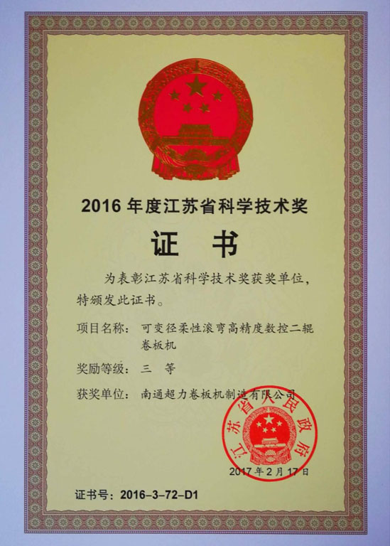 公司致力于卷板機技術創新與研發。擁有江蘇省(南通超力)數控卷板機工程技術研究中心,江蘇省企業研究生工作站,公司與南京航空航天大學、燕山大學、黎明化工研究院等高校和科研機構建立了產學研合作關系,南京航空航天大學產學研基地,江蘇省鍛壓機械產品質量監督檢驗中心合作單位。中國質量認證中心(CQC)ISO9001質量管理體系認證企業,卷板機產品獲CE認證。